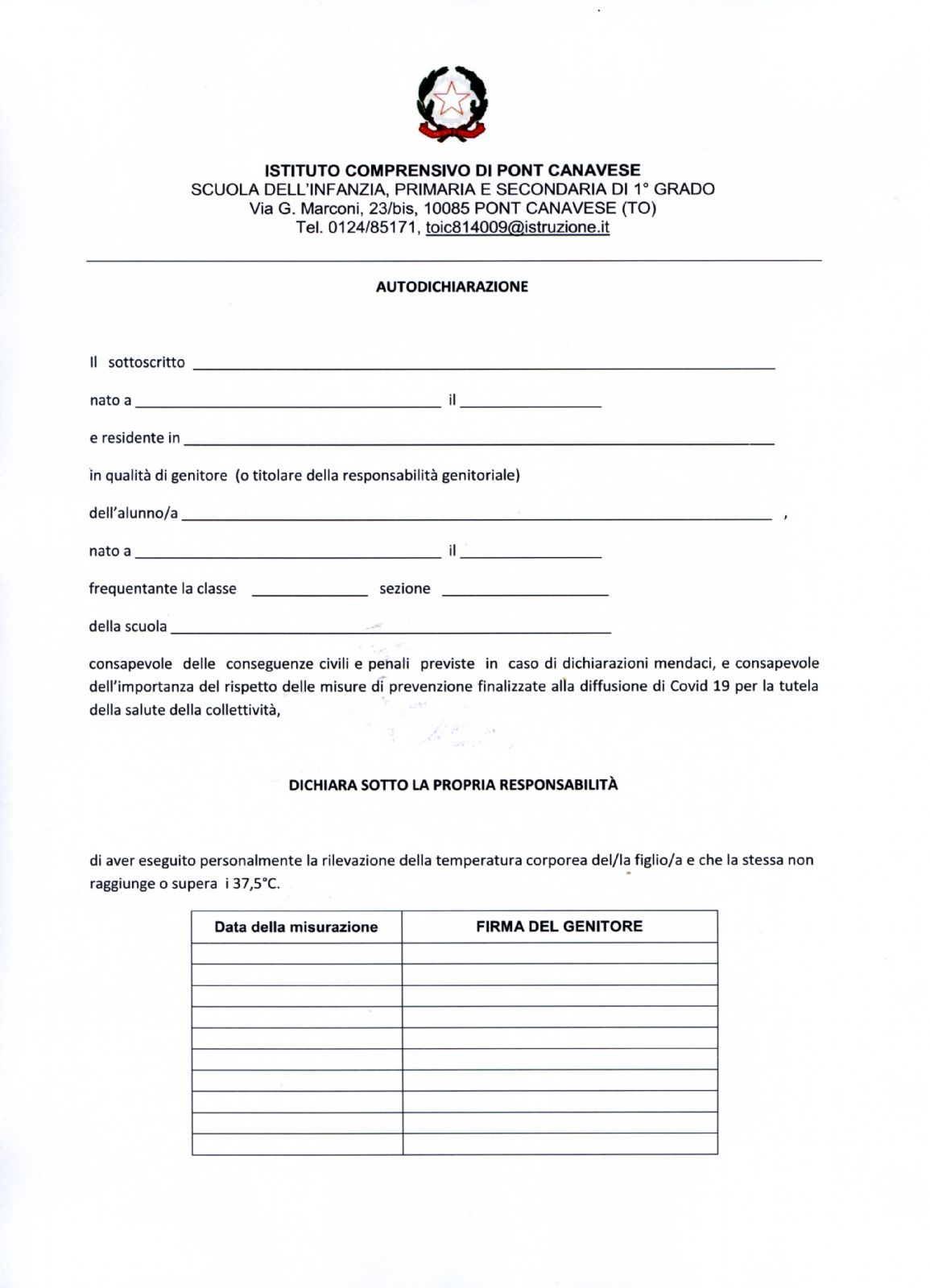 Autocertificazione Covid Scuola Modulo , Ovvero Di Non Essere Sottoposti A Quarantena E Di Non Essere Risultati Positivi Al Covid 19.