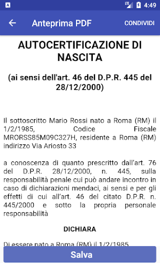 Autocertifico For Android Apk Download. 445 del 28 dicembre 2000. Fac simile di autocertificazione diploma di maturità il modello per l'autocertificazione è davvero molto semplice da compilare e si divide in due parti. Conseguimento diploma di maturità dichiarazione sostitutiva di certificazione ai sensi del d.p.r. 445 del 28 dicembre 2000) conseguimento maturità sottoscritt nat a ( ) il , residente a c.a.p. Il modello è piuttosto semplice, possiamo individuare due diverse parti. L'autocertificazione per la maturità 2020 è obbligatoria per studenti, insegnanti e accompagnatori, può essere scaricata in formato.pdf e deve essere compilata e consegnata alla commissione. Un'altra possibilità è rappresentata dall'autocertificazione del diploma di maturità, un modulo in carta semplice, senza necessità di bolli o autentica delle firma, nel quale si dichiara, sotto la propria responsabilità, di aver. Maturità 2020, tra le misure di sicurezza e un modulo di autocertificazione da presentare: In via consapevole delle sanzioni penali previste in caso di dichiarazioni non veritiere e di falsità negli atti e della Il pdf del modulo da scaricare e come compilarlo. Il fac simile di autocertificazione di diploma presente in questa pagina è proposto in due formati, doc e word. Il file doc può essere aperto e compilato utilizzando word o un altro programma che supporta questo formato. Dichiarazione sostitutiva di certificazione (d.p.r. Matricola, cognome, nome (scrivere sul rigo qui sopra) luogo e data di nascita consapevole delle sanzioni penali previste in caso di dichiarazioni non veritiere e di falsità negli atti e della In caso di smarrimento del diploma o per altre necessità è possibile anche ottenere un certificato sostituivo, che ha lo stesso valore dell'originale.