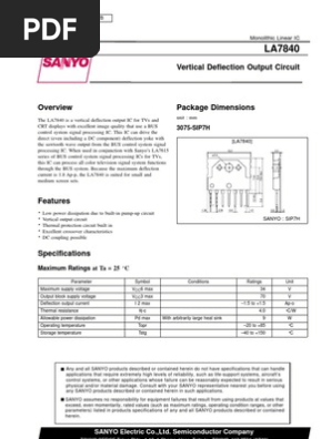 Vcr Basic Service Data. Low , la7840 operating conditions at ta = 25 °c parameter symbol recommended supply voltage vcc6 op. La7840 vertical deflection output circuit components datasheet pdf data sheet free from datasheet4u.com datasheet (data sheet) search for integrated circuits la7840 datasheet. La7840 datasheet, la7840 pdf, la7840 data sheet, datasheet, data sheet, pdf, sanyo, vertical deflection output circuit. View la7840 to our catalog. The la7840 is a vertical deflection output ic for tvs and crt displays with excellent image quality that use a bus control system signal processing ic. Sanyo, alldatasheet, datasheet, datasheet search site for electronic components and semiconductors, integrated circuits, diodes, triacs, and other semiconductors. The gate pins are rated for an absolute maximum. > press pro button to enter the adjustment or setup mode. La7840 datasheet, cross reference, circuit and application notes in pdf format. The la7840 is a vertical deflection output ic for tvs and crt displays with excellent image quality that use a bus control system signal processing ic. La 7840 datasheet la7840 substitute ic la7840 price ic 7840 pin voltage la7841 pin voltage la7830 datasheet la78040 datasheet la7845 la78040b. La7801 synchronization & deflection circuits. Vertical deflection output circuit, la7840 datasheet, la7840 circuit, la7840 data sheet : La78040 tv and crt display vertical output ic. <a href=>vertical deflection output circuit overviewthe la7840 is a vertical deflection output ic for tvs andcrt displays with excellent image quality that use a buscontrol system signal processing ic.