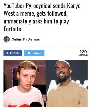 Youtuber Pyrocynical Sends Kanye West A Meme Gets Followed Immediately Asks Him To Play Fortnite Ifunny. No memes that are text only. Someone saying something funny on twitter/tumblr/reddit/etc. Kanye west encouraged fans to make these funny fake album covers for 'ye'. While kanye fans have struggled these past several years in defending the singer and rapper's behavior, it's clear he remains an enigma to the american media. Fifteen best kanye west memes. Submitted 6 hours ago by magnumorpus. Enjoy my kanye west inspired halloween costume (i.redd.it). Since the album's release, that cover has spawned a meme, which only grew in popularity between yenerator and photoshop users on twitter and reddit, a bounty of new album covers have come online. Kanye west confirms he's converted to christianity: I can't believe meryl streep is a meme lmao. Kanye west confirms he's converted to christianity xxlmag.com man won't even allow swearing in his presence. Kanye west has struggled to have a concert where he actually performs on stage for more than 5 minutes. I'm a recent convert, which means i recently got saved this year. watch: After returning to twitter and providing a memorable interview with forbes, fans couldn't help but meme their visions for a future where. Pictures without captions may be removed by a moderators discretion.