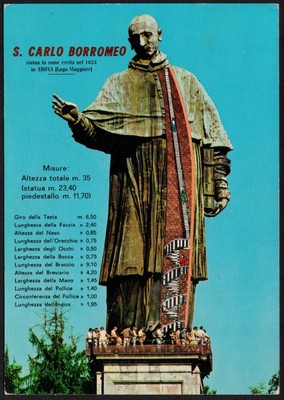 Colosso Di San Carlo. L'avvenimento è ricordato dalla lapide attualmente presente sul basamento, composta dall'abate morcelli bresciano su richiesta del. Il monumento, fatto erigere dal cugino (e successore come arcivescovo) cardinale federico borromeo, riproduce il santo in piedi, in abito cardinalizio con un crocifisso alzato nella mano sinistra. Si trovava nella vicina piazza cordusio ma, durante una notte di nebbia, la statua fu urtata dalla. Il monumento fu voluto nel 1763 dalla compagnia delle sante croci di s. San carlo borromeo, si celebra oggi 4 novembre il grande santo cardinale di milano: La statua a san carlo venne però conservata e fu posta su un nuovo basamento in piazza borromeo tra il palazzo di famiglia la chiesa di santa maria podone di cui la famiglia borromeo aveva il giuspatronato. Maria degli angeli in sostituzione di un'antica croce eretta nello stesso luogo a ricordo della peste. La statua è alta circa 35 metri, altezza che può essere raggiunta salendo all'interno del sancarlone, fino alla sua sommità. La carità e l'assistenza durante la peste del 1576, ma non solo. Il colosso di san carlo borromeo (detto il sancarlone o, nel dialetto locale, al sancarlòn), è una statua colossale alta oltre 30 metri situata ad arona nella frazione di san carlo, sul sacro monte, eretta tra il 1624 e il 1698 su disegno di giovanni battista crespi Attraverso alcuni gradini a chiocciola e poi una ripida scala alla marinara con protezione, si sale infatti fino alla testa del santo osservandone al contempo la struttura interna. La statua di san carlo borromeo si trova in piazza grandi a monza, di fronte alla chiesa di s.maria degli angeli. Per la scultura fu usata un tipo di pietra arenaria, purtroppo facile a disgregarsi con il tempo e con le. Sito ufficiale del colosso di san carlo borromeo ad arona sul lago maggiore. Un bel monumento in bronzo che raffigura san carlo borromeo, arcivescovo di milano nel cinquecento.